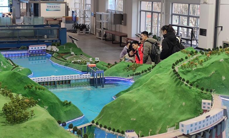会谈交流后,实践团参观了皇冠赌场 实验教学与创新实践中心,初文婷老师详细讲解了大坝沙盘模型的构造布局,并介绍学院现有实验室资源,包括水工结构实验室、工程力学实验室、泥沙实验室等8个大规模科研实验室,保障学生良好的科创环境,并在实验教学、支撑重大科研项目有着重要作用。