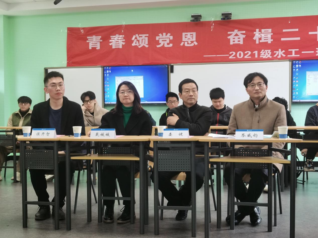 3月24日上午,娄健书记参加联系班级——2021级水工1班“青春颂党恩,奋楫二十大”主题班会活动,并与同学们座谈交流。副书记戴媛媛、班导师岑威钧出席班会。班会由2021级辅导员侯开智主持,37名同学参加班会。