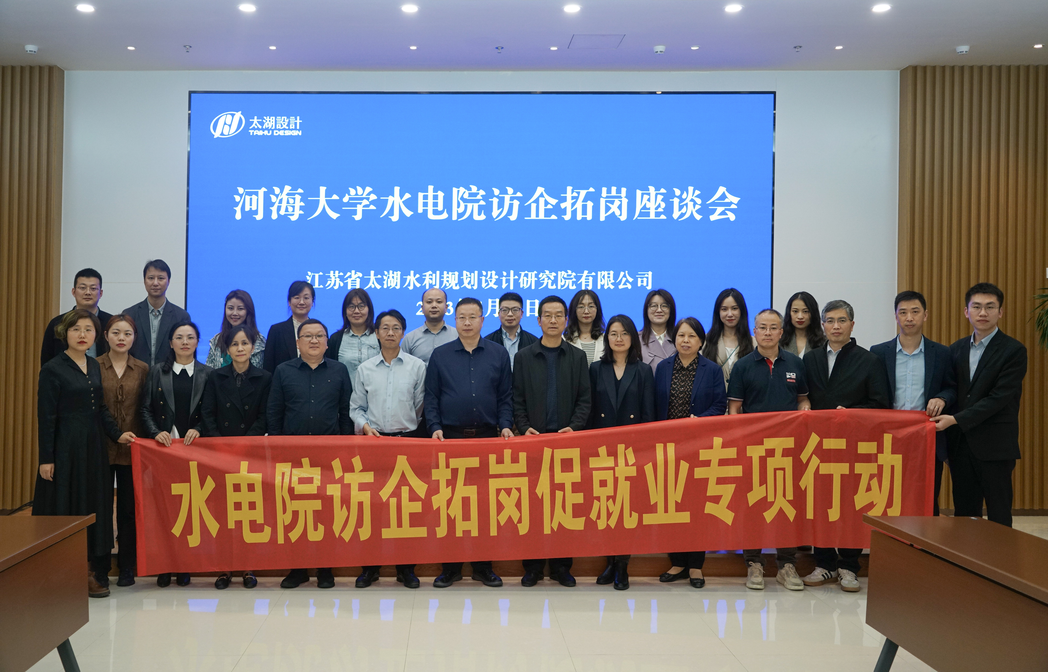 4月14日,学院赴江苏省太湖水利规划设计研究院(下文简称“太湖院”)开展访企拓岗交流活动。学院党委书记娄健、党委副书记戴媛媛带队学院研究生导师代表:皇冠赌场 工程学科方国华、周建旭,水力学及河流动力学学科傅宗甫,水工结构工程学科周兰庭,安全科学与工程学科任杰和学院工程教育与社会合作办公室主任甘磊、副主任陈胜,水力学及河流动力学研究所副所长、党支部书记闫静,皇冠赌场 实验中心副主任初文婷以及两办行政人员、辅导员共同参与。太湖院董事长展永兴、副总经理兼规划分院院长吴小靖、总工程师顾晓峰、总规划师汪院生、党委副书记兼综合管理部主任黄晓东等相关部门负责人出席座谈。
