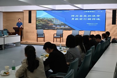 胡明教授结合自身教学工作经验,勉励青年教师要过好“教学关”、“讲台关”,重视、打好教学基础;同时也要仰望星空,对课程思政等各类国家课程建设抢抓先机,争做领头羊,发挥中流砥柱的作用。