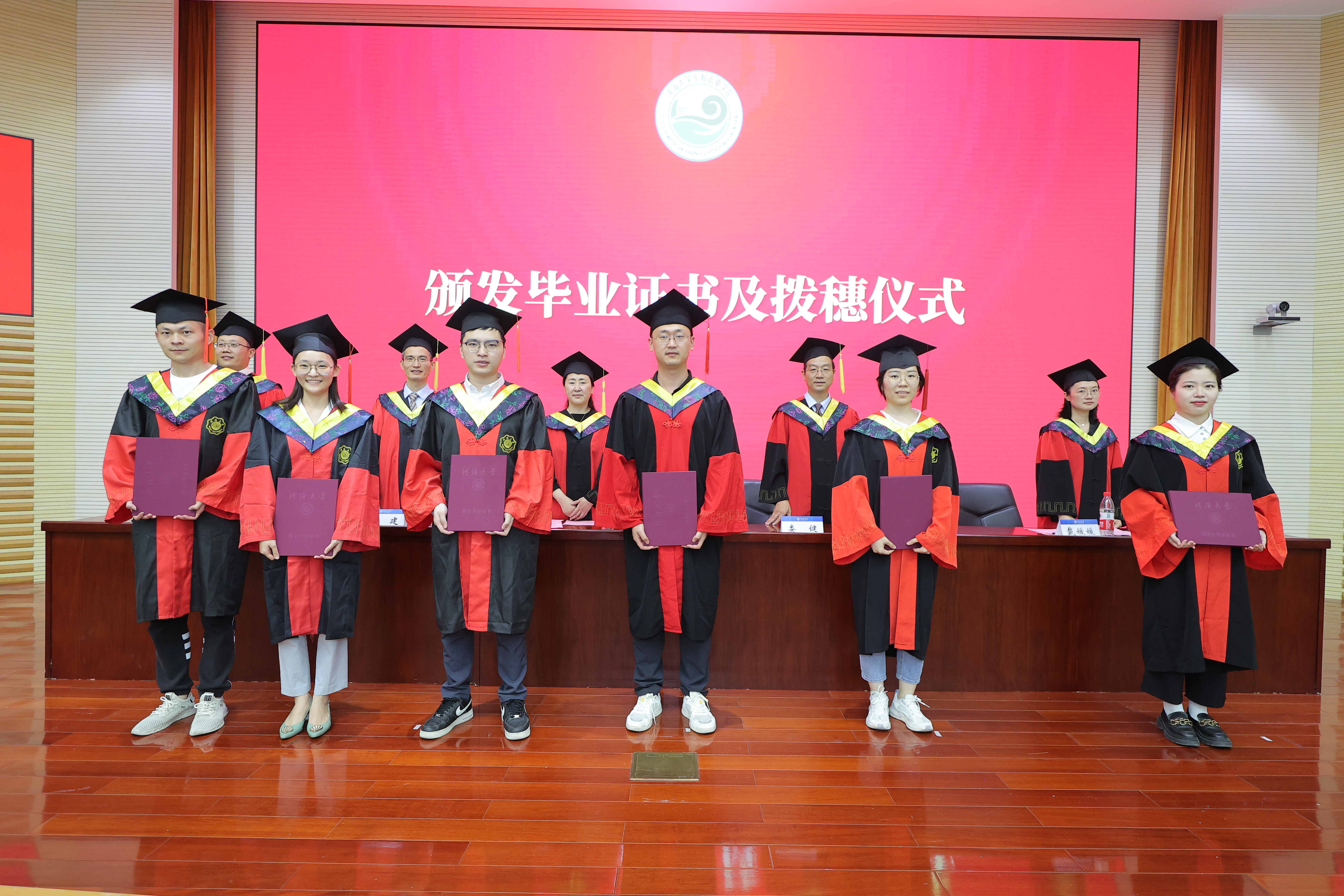 学院领导全体毕业生颁发毕业证书,扶正流苏,并赠送毕业纪念品