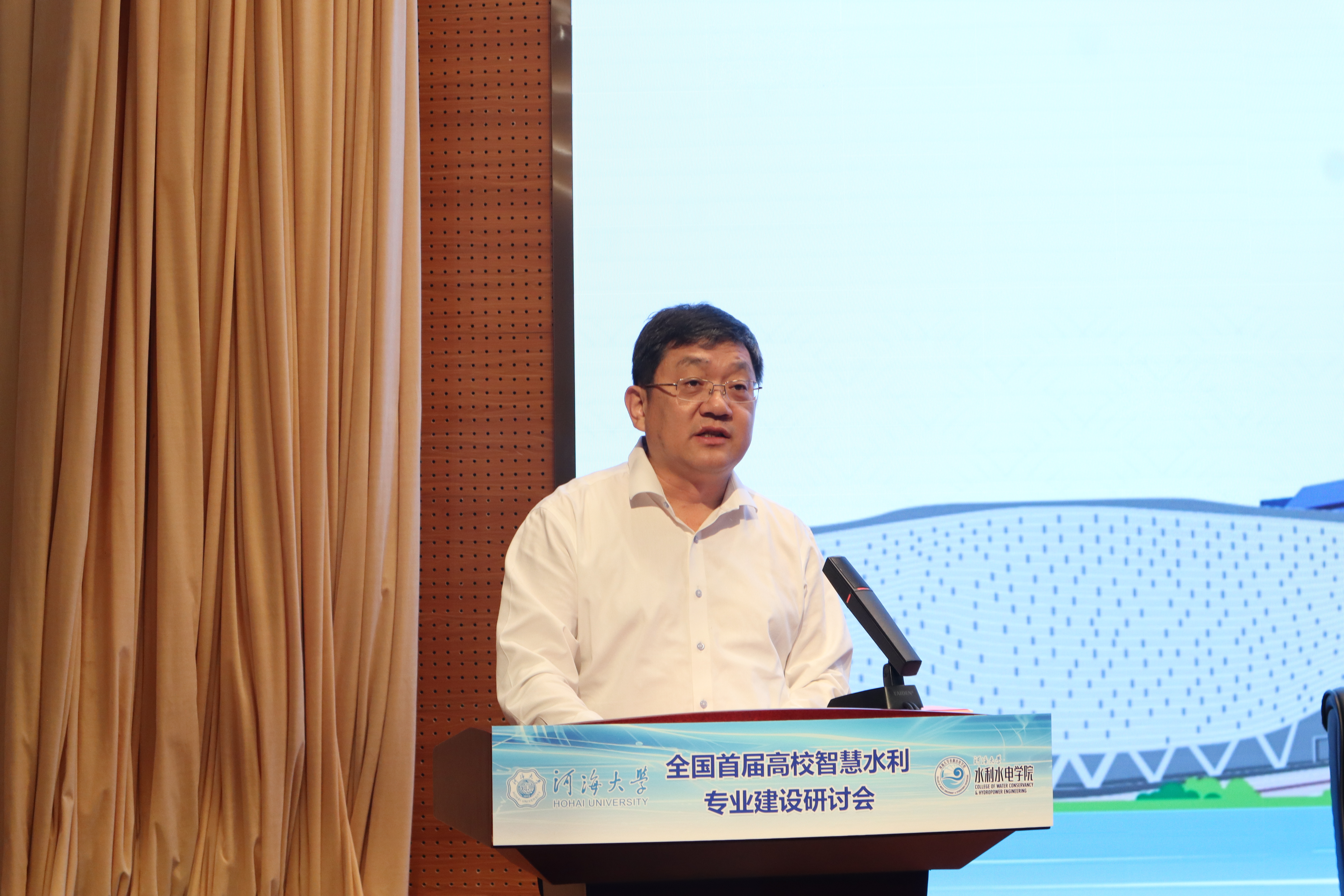 821-22日,由河海大学主办,皇冠赌场 承办的“全国首届高校智慧水利专业建设研讨会”在河海大学召开。河海大学校党委书记、中国工程院院士唐洪武出席开幕式并讲话。中国水利教育协会副会长、高教分会会长,教育部高等学校水利类专业教学指导委员会主任委员、中国工程教育专业认证协会水利类专业认证委员会主任委员徐辉,江苏省教育厅高教处副处长魏永军出席会议并致辞。中国皇冠赌场 科学研究院、中国工程院院士王浩,水利部信息中心主任蔡阳,教育部高等学校水利类专业教学指导委员会秘书长董增川,长江水利委员会副总工程师黄艳,南瑞集团有限公司副总工程师徐青,中国电建集团昆明勘测设计研究院有限公司首席信息官赵志勇等出席开幕式并做大会特邀报告。开幕式由皇冠赌场 院长王媛主持。