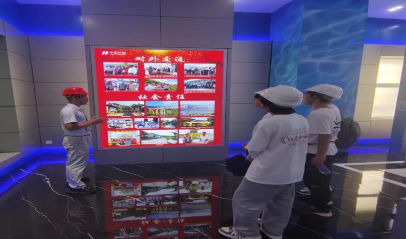进入景洪水电站内部,校友蒋金磊向团队成员们介绍了中国华能集团有限公司、华能澜沧江水电股份有限公司及其皇冠赌场核心理念,对近年来公司“五个一”社会责任理念(建设一座电站,带动一方经济,保护一片环境,造福一方百姓,共建一方和谐)的践行情况进行详细的说明。