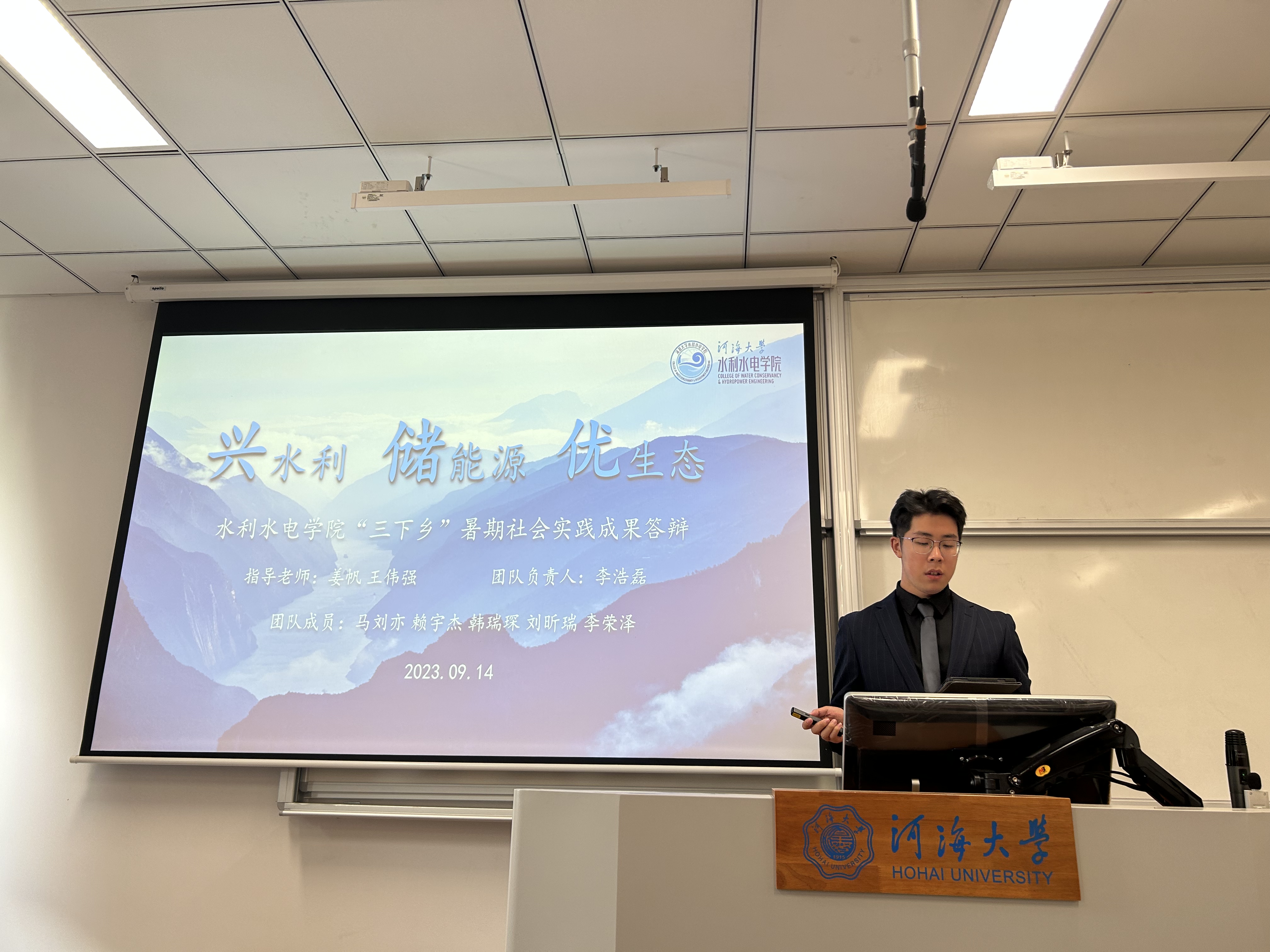 三位评委老师对答辩团队进行了专业的指导和细致的点评,在提问和解惑的同时,对此次暑假社会实践的开展给予了高度的肯定和赞许,也寄托实践团队继续发扬“艰苦朴素,实事求是,严格要求,勇于探索”的河海精神,为水利事业发展贡献水电学子的智慧和力量。(文/许哲;图/卢浩)