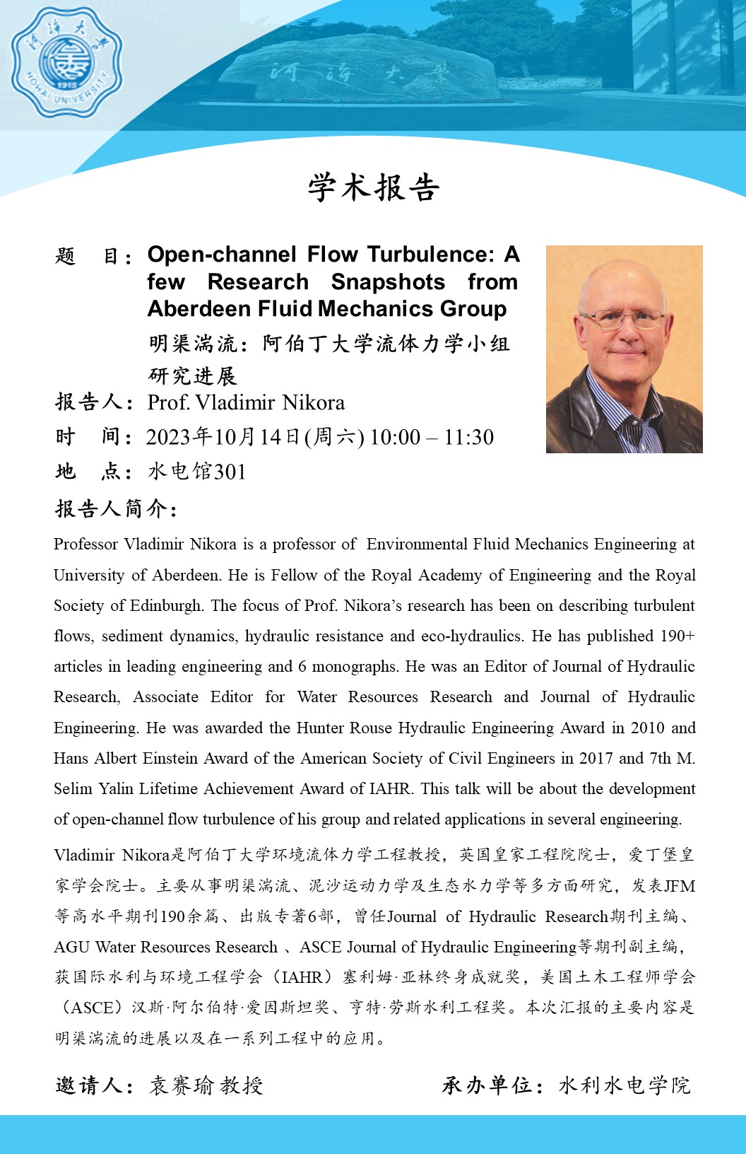 学术报告会 | 明渠湍流:阿伯丁大学流体力学小组研究进展