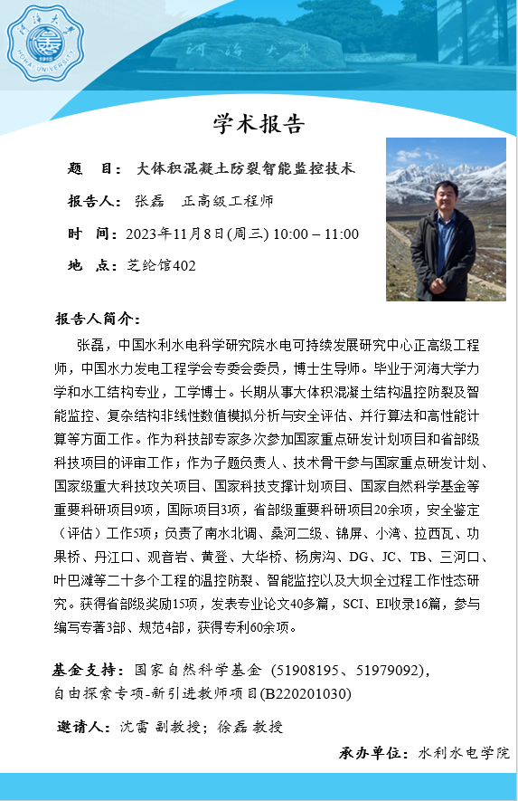 学术报告会 | 大体积混凝土防裂智能监控技术