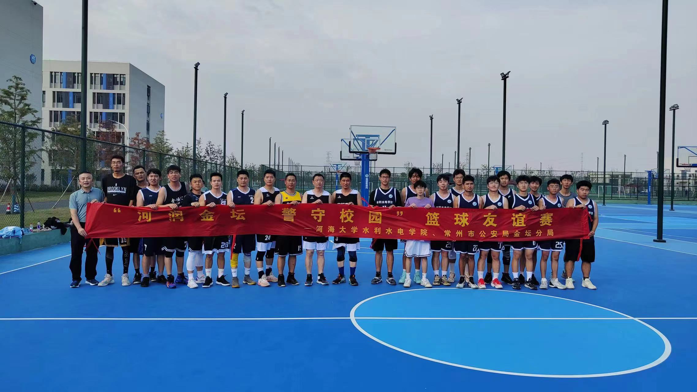 2023年11月5日,皇冠赌场 与常州市公安局金坛分局在常州校区共同举办“河润金坛,警守校园”篮球友谊赛。来自常州市公安局金坛分局的警官们与同学们在球场上以球会友,现场气氛热烈。