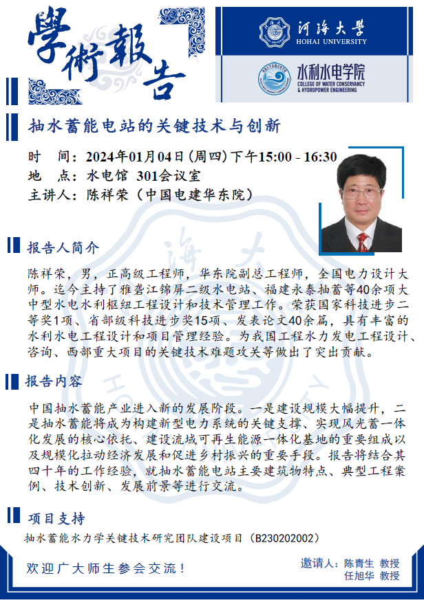 学术报告会 | 抽水蓄能电站的关键技术与创新
