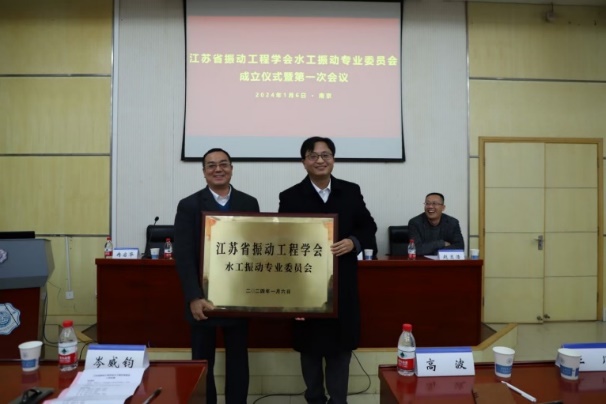 张燎军副理事长代表江苏省振动工程学会致辞,他表示,专委会的成立,将汇聚水工振动及相关领域的专业人才,开展学术交流、科学普及、技术培训等服务,促进江苏振动工程学科的科技创新和高质量发展。李彦斌秘书长宣读学会关于专委会成立的文件,河海大学岑威钧教授任专委会主任委员,河海大学赵兰浩教授、江苏大学高波教授、扬州大学王川教授、南京水利科学研究院陆俊教高、国电南瑞皇冠赌场 公司胡波教高为专委会副主任委员,河海大学王伟强教授为专委会秘书长,南京水利科学研究院曹翔宇高工为专委会副秘书长。会议进行了专委会授牌仪式以及委员聘书发放仪式。钱向东副理事长代表江苏省力学学会、赵兰浩副秘书长代表江苏省水力发电工程学会,为专委会的成立致辞祝贺。