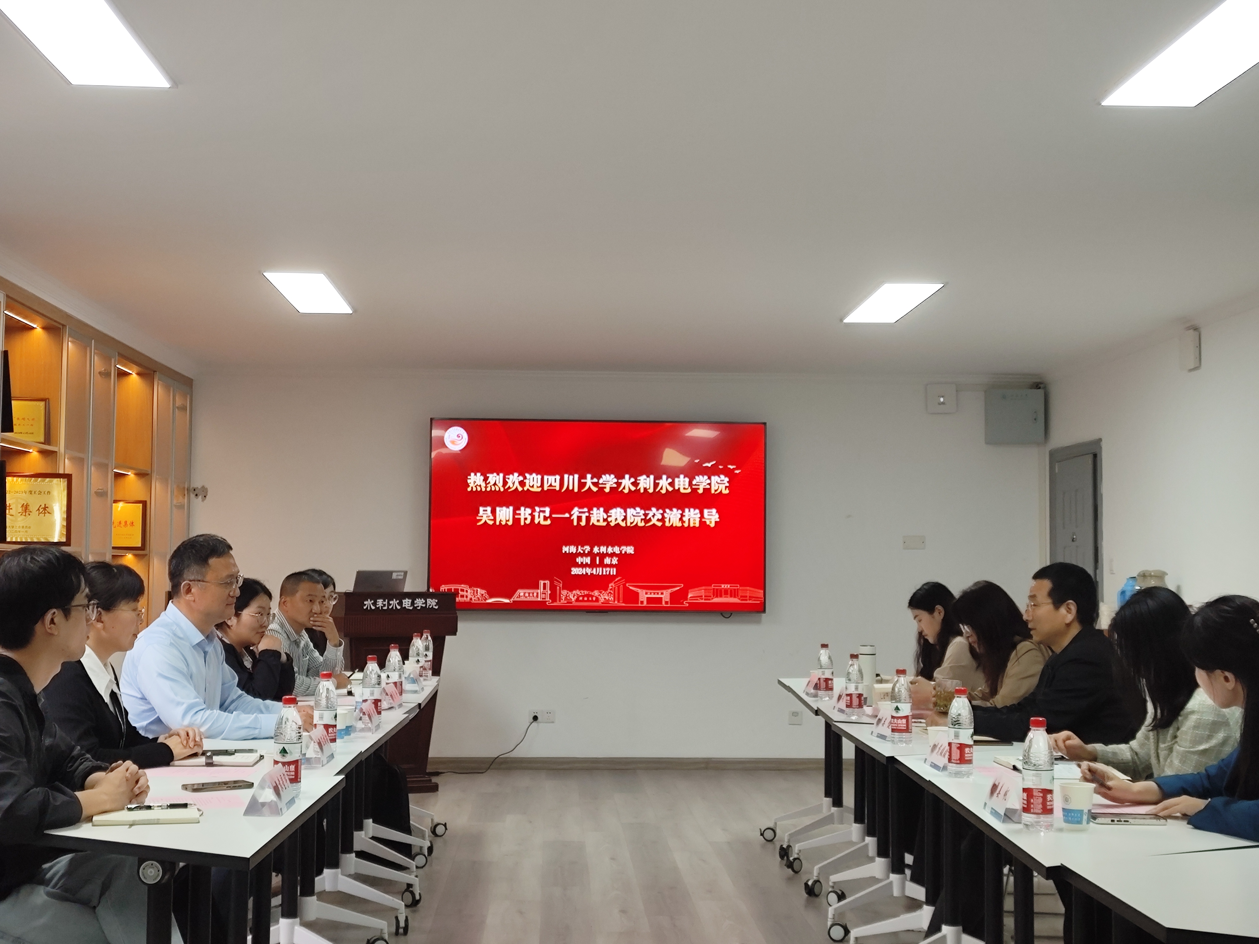4月17日,四川大学皇冠赌场 吴刚书记一行前来皇冠赌场 交流指导。学院党委书记娄健出席并主持座谈会。