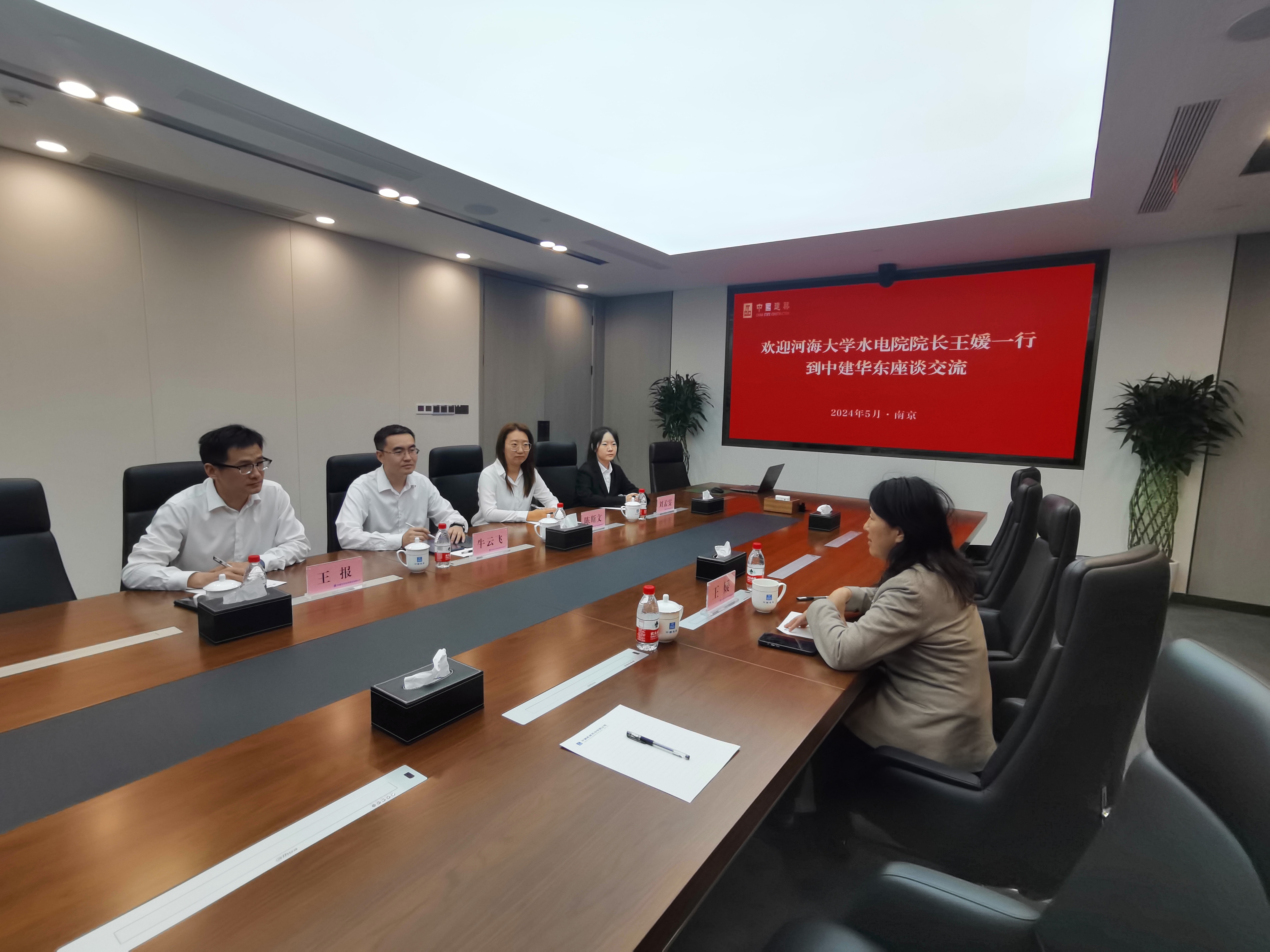 中建华东投资建设有限公司执行总经理牛云飞对王媛院长来访表示热烈欢迎,并介绍了企业概况,水利业务板块、人员结构等情况,充分肯定了河海毕业生在工作中的突出表现,希望双方在人才培养、科技研发和成果转化等方面开展深入合作。王媛院长介绍了学院学科建设、师资队伍、学生培养、科研项目等相关情况。她对近年来中建华东投资建设有限公司在水利业务板块产出的系列成果表示祝贺,希望校企双方进一步开展交流合作,优势互补,共同推动新时代新征程水利高质量发展。