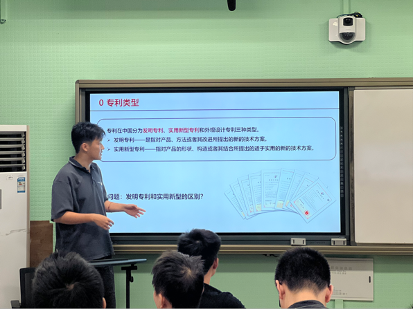 会上,毛子铭向大家分享了专利写作、发表的相关内容。他从专利类型、专利申请步骤、专利检索、专利内容提升、专利初稿形成五个方面向第一党支部的同学们详细介绍了如何写作一篇专利。他着重介绍了专利的发表方式,阐释了每个步骤的细节注意点和可能会犯的错误,同学们受益匪浅。