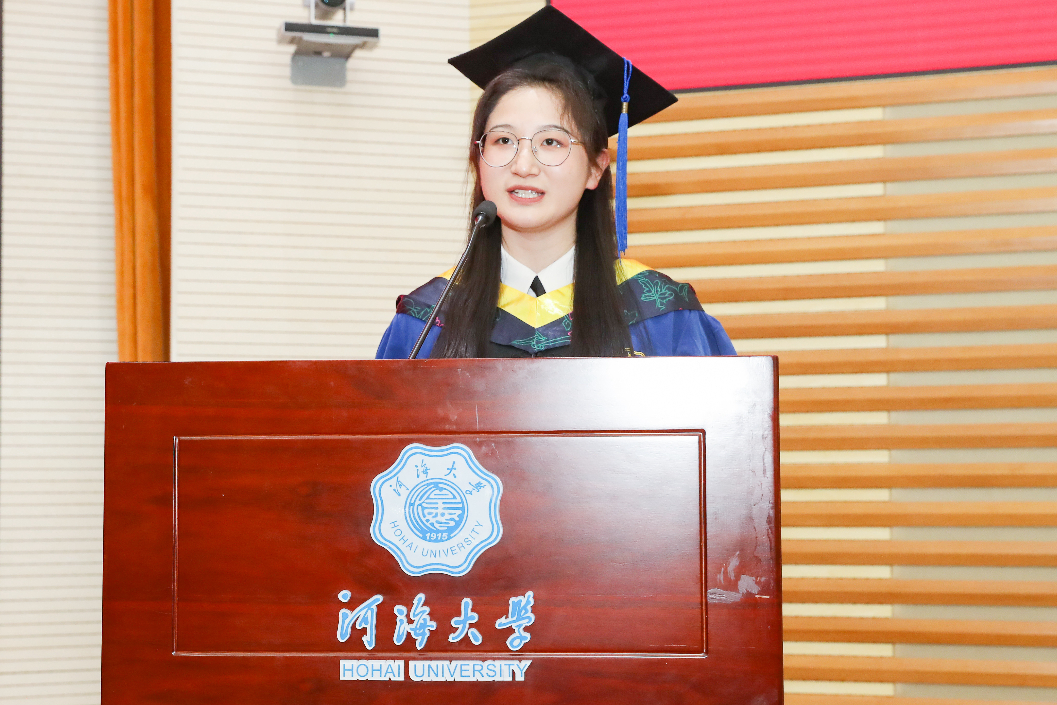 研究生毕业生代表王慧、本科毕业生代表侯永驰发言,表达了对学院的惜别之情和对老师们的感激之心,表示在人生新征程上将始终秉承河海精神,行健不息。