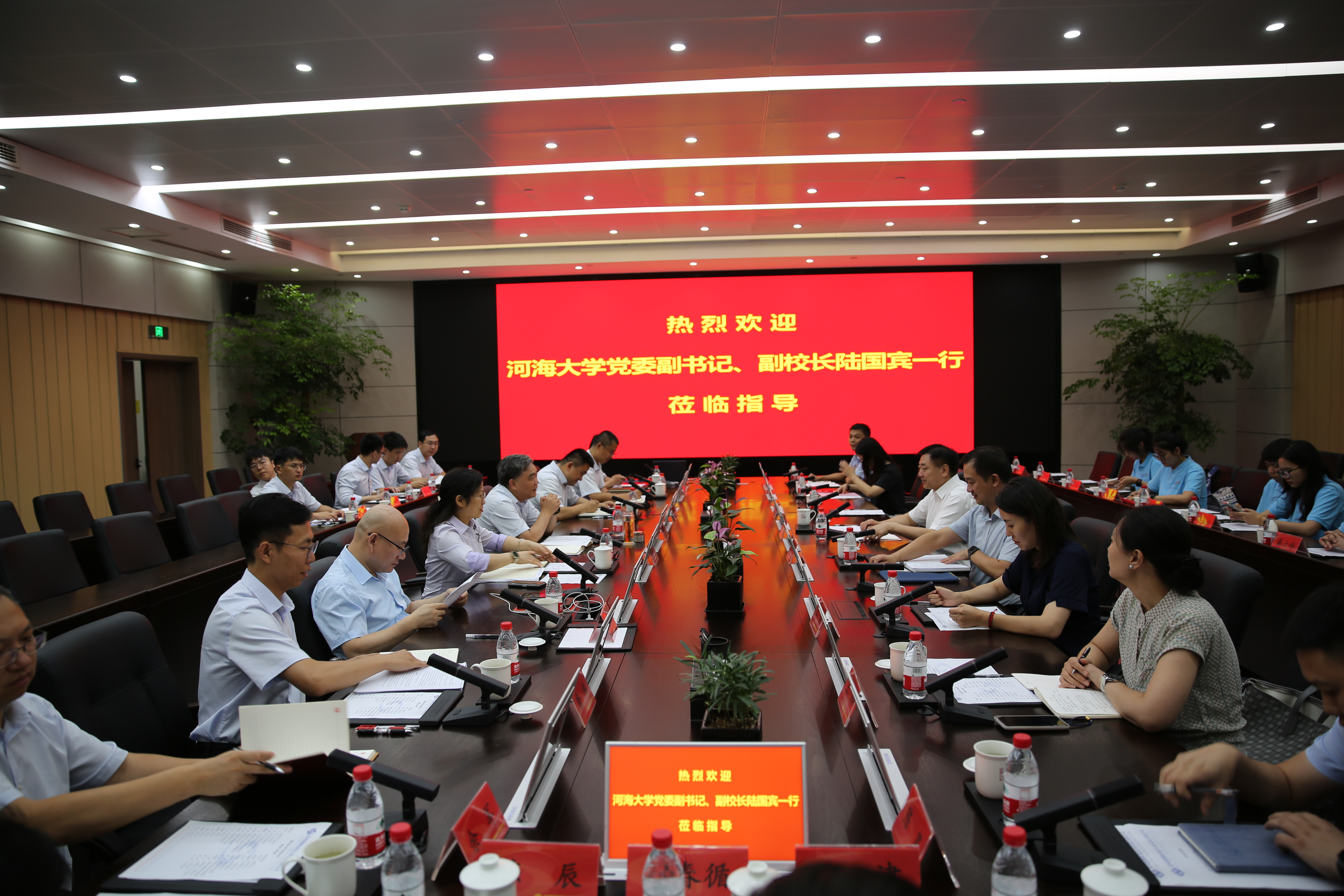 7月25日上午,校党委副书记、副校长陆国宾,学生处处长王方以及学校相关部门负责人来到郑州市慰问皇冠赌场 黄河流域水利数字孪生建设调研实践团师生并具体指导实践工作,带领实践团一行前往水利部黄河水利委员会开展调研。黄河水利委员会党组书记、主任祖雷鸣,党组成员、纪委书记王乃岳及相关部门负责人、河海大学校友出席会议。祖雷鸣感谢学校长期以来对黄河保护治理工作的关心支持,他勉励实践团同学们增强专业本领,期盼实践团和更多优秀学子、更多高水平科研团队积极参与黄河流域生态保护和高质量发展重大国家战略中。陆国宾教育引导实践团同学们,要面向国家重大需求,聚焦水利行业现实问题,把实现自身价值融入中国式现代化建设。会前,师生们参观了黄河博物馆,切身领略黄河对中华民族的养育和塑造,感悟一代代水利人奋力追求黄河安澜的恒心。