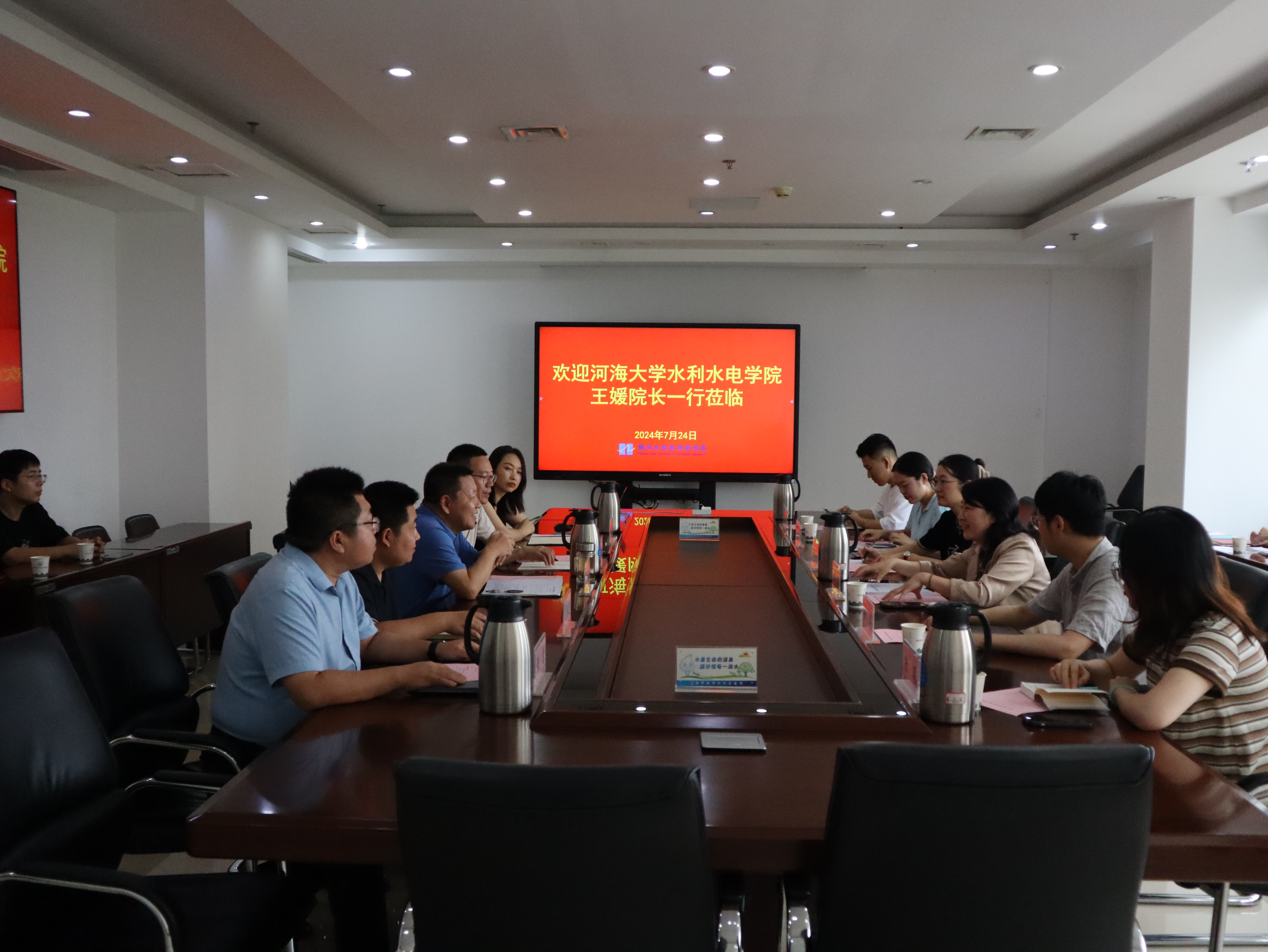 7月24日,王媛一行前往黄河水利科学研究院开展座谈交流,共建河海大学大学生社会实践基地。黄河水利科学研究院副院长马晓、人事处处长许虎、相关部门负责人、河海大学校友以及学院2023级黄河水利科学研究院基地实习9名研究生共同参加座谈。马晓对学院一行来访表示热烈欢迎,他表示,希望双方在研究生联合培养、校企科研创新等方面持续开展深入合作,进一步促进优质资源共享,实现双方互利共赢。王媛就学院历史沿革、学科建设、师资力量等方面进行了详细介绍,她表示,希望在拔尖人才培养、服务行业发展等方面进一步加强校企链接,共同为推动新时期水利事业高质量发展供给新质生产力。她勉励实践团同学们要砥砺前行之路,锤炼过硬本领,以真才实学投身国家水利事业建设。会后,师生们参观了数字孪生黄河工程,针对该工程建设的总体情况、核心业务模型与模型云平台、实际工程中的运用等内容开展调研学习。