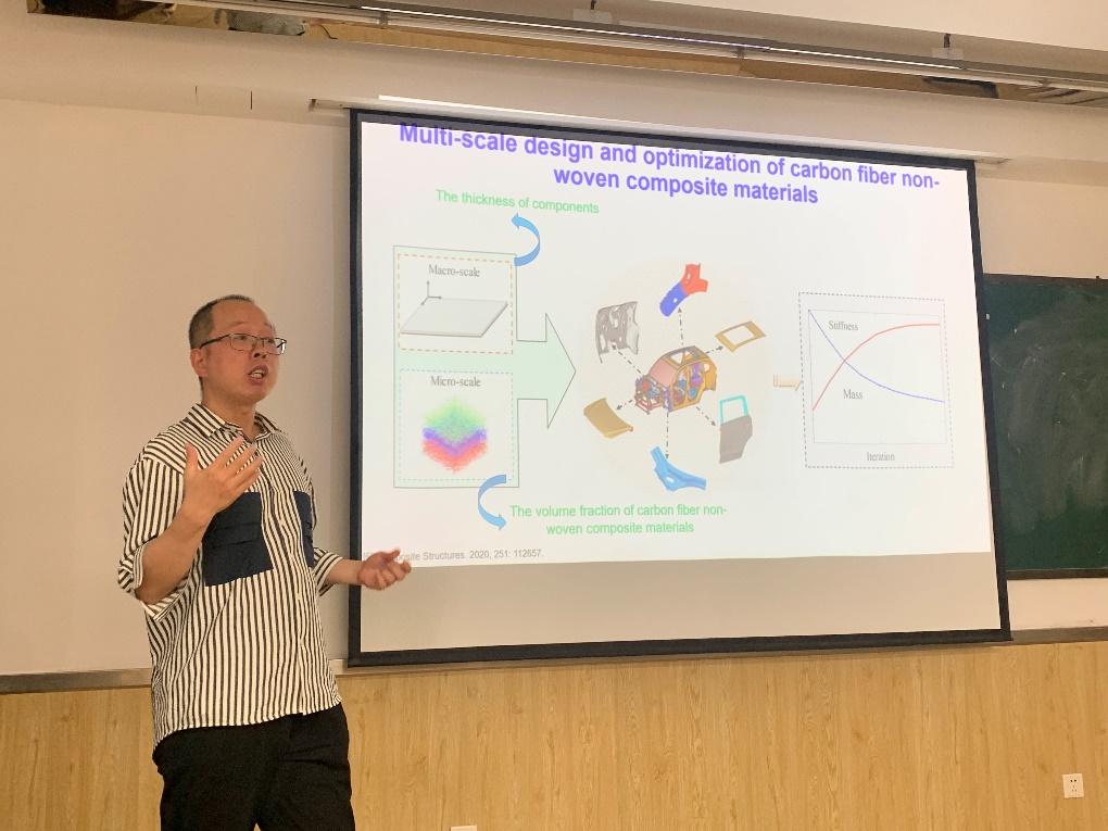 Eric教授通过多个案例给大家介绍了新型材料与结构计算设计的前沿领域,例如具有负泊松比及高强抗冲击力的材料开发,在不确定条件下的材料细观结构拓扑优化,基于BandGap技术的声学超材料和碳纤维复合材料的多尺度设计策略,以及在提升工程效率、增强结构韧性和推动可持续发展方面的变革性影响。