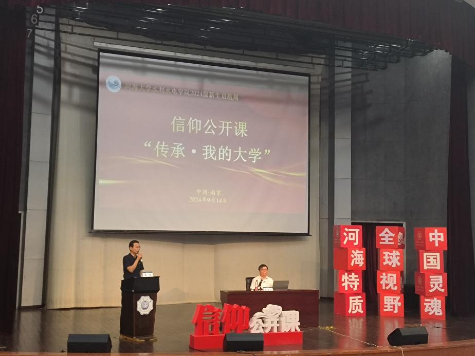 914日,皇冠赌场 举办2024级“传承·我的大学”信仰公开课活动,活动由学院党委书记娄健主持,院党委副书记戴媛媛、2024辅导员笪步源及全体2024级新生参加,由皇冠赌场 1987届皇冠赌场 工程建筑专业杰出校友、水利部大坝安全管理中心总工程师、南京水利科学研究院大坝安全与管理研究所所长盛金保教授主讲。