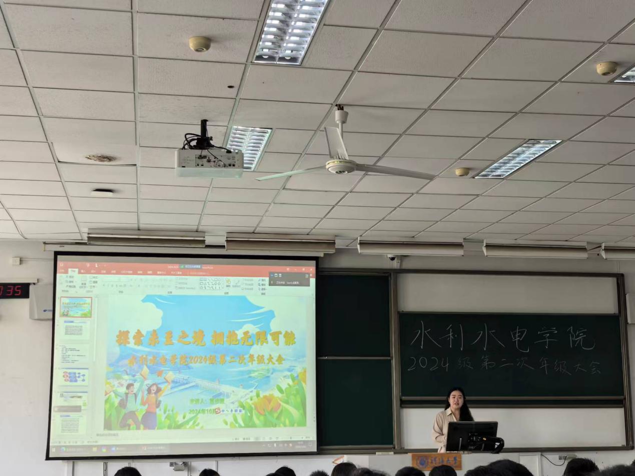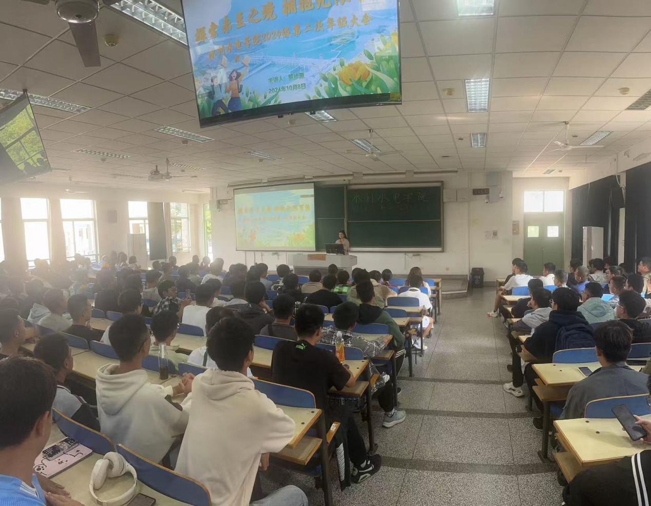 2024级举办“探索未至之境,拥抱无限可能”年级大会,24级全体本科生参加,会议由辅导员笪步源主持。