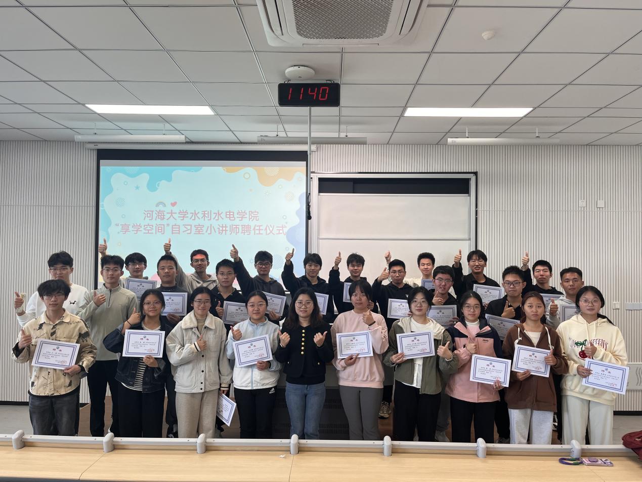 学院举办“享学空间”自习室小讲师聘任仪式,为10个班级的25位自习室小讲师颁发聘书。小讲师们自聘任期起,负责为自习室同学们讲题并答疑解惑。参加聘任仪式的还有各班级班长、团支书,同时也是自习室督查小组成员。