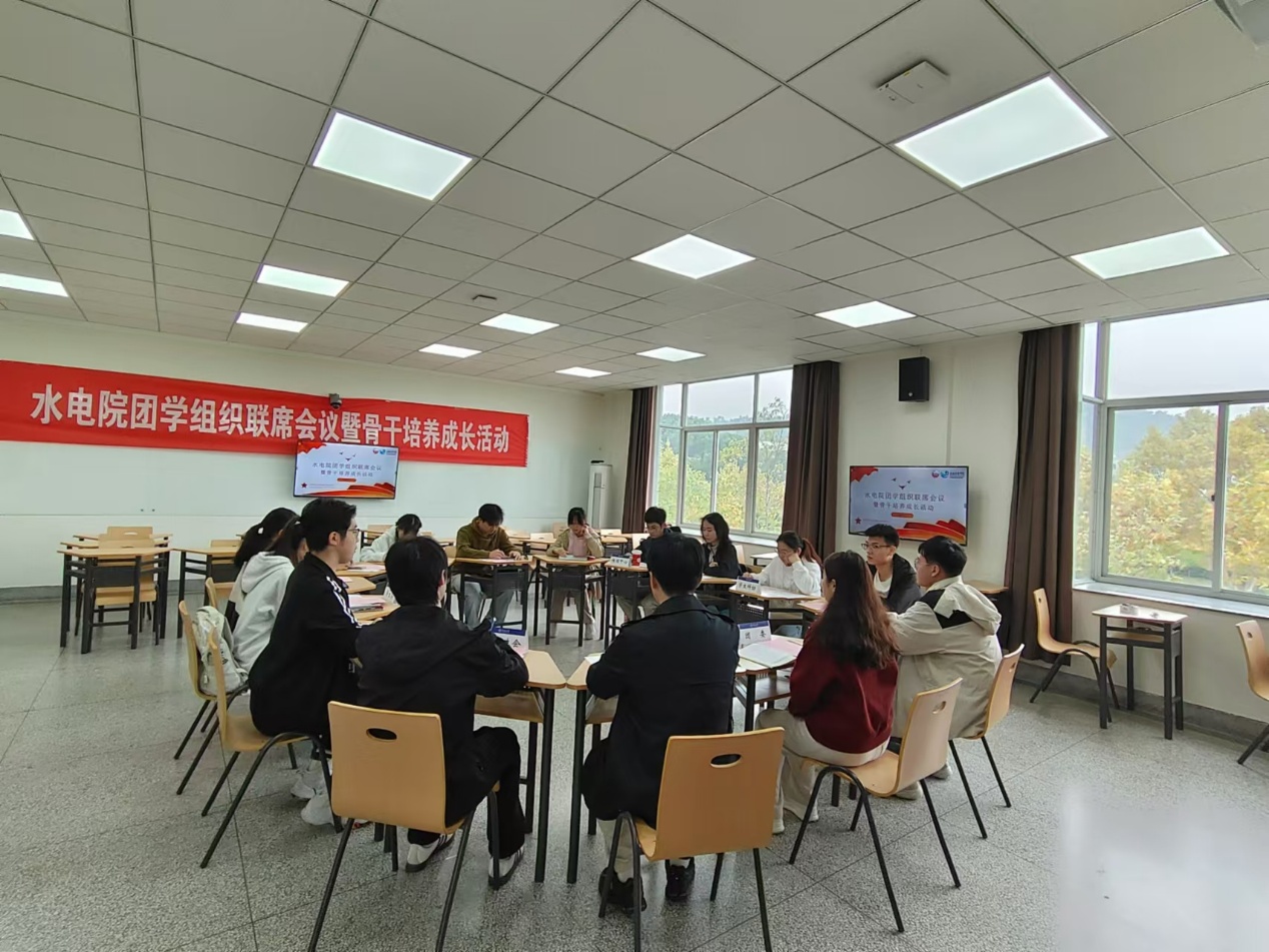 为进一步提高皇冠赌场 团学组织凝聚力,加强各组织主席团的协作交流,提升主席团成员的工作能力与交流沟通能力,2024年11月13日,皇冠赌场 举办“水电优才-先锋骨干领潮计划”团学组织联席会议暨骨干培养成长活动。院团委、研究生会、学生会、青年志愿者协会、学生科协、传媒中心全体主席团成员参加,会议由院团委书记笪步源主持。