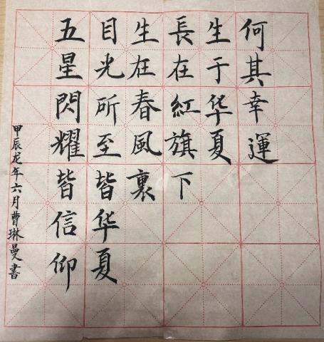此次书法比赛,不仅是一次书法与诗词艺术的交流盛会,更是深化学生对中华民族优秀传统文化认识、增强民族自豪感和归属感的重要途径。通过书法与诗词这一独特形式,学生们不仅锻炼了自身的艺术修养,更深刻理解了“中华民族共同体”的内涵,激发了为构建中华民族共有精神家园贡献力量的热情。(文/水电院学生会文艺部,图/参赛选手)