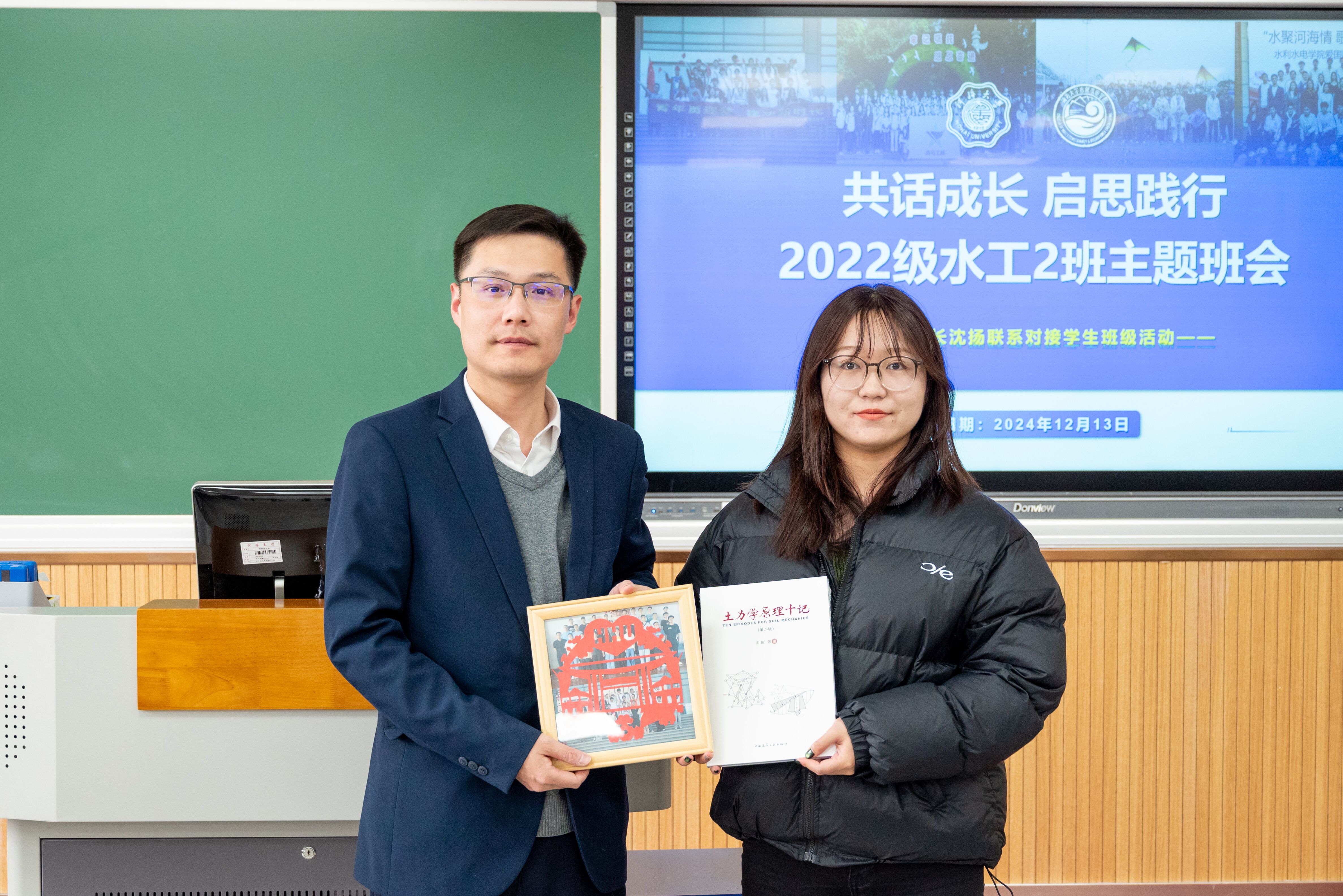 会上,沈扬校长向2022级水工二班全体同学赠书,勉励大家不断学习,实现知识的反哺与成长。师生们就大家的学习生活进行了深入的交流,沈扬校长细致回答了大家各方面的疑问。现场气氛活跃,交流互动热烈。