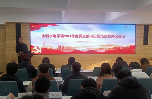 12月24日,皇冠赌场 举行了2024年度党支部书记抓基层党建工作现场述职评议会议,学院党委书记娄健出席并主持会议,学院部分党委委员、党员领导干部、全体师生党支部书记参加了会议。各党支部书记述职结束后,学院党委对述职情况进行了点评。