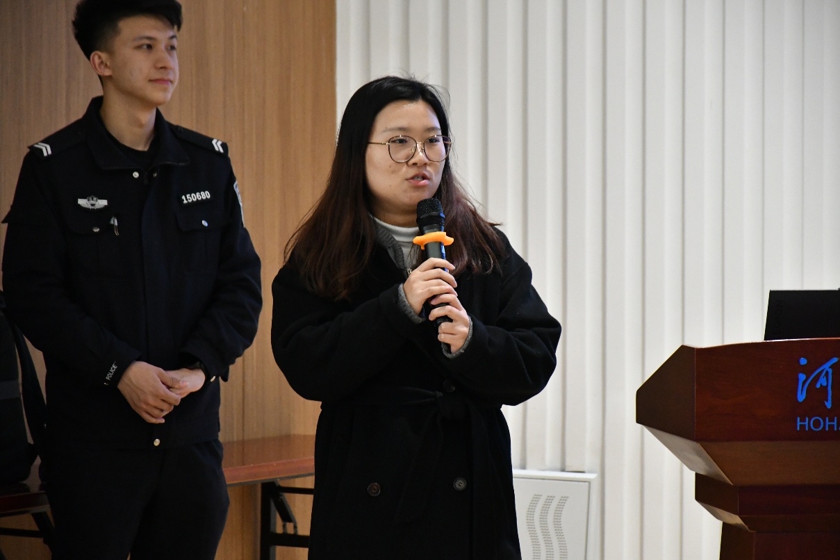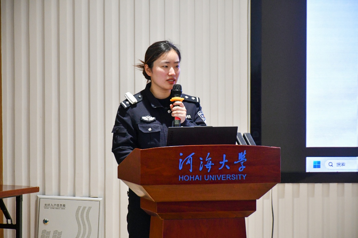 侦查民警陈警官则聚焦"数字时代的反诈攻防战",通过数据统计揭开电信诈骗黑色产业链。他结合教育部最新统计数据显示,深度解析了针对高校的三大变异型诈骗:利用智慧校园系统漏洞的"课程退费"诈骗、伪装学术会议的"资料窃取"骗局,以及针对科研团队的"专利钓鱼"攻击。针对研究生群体,他特别提醒注意"学术诈骗"陷阱,包括虚假期刊投稿、数据买卖等违法行为。他倡导师生共同参与"全民反诈"行动,呼吁“大家要像保护实验数据一样守护个人信息”,这一形象且生动的比喻,立即引发大家的思考与共鸣。