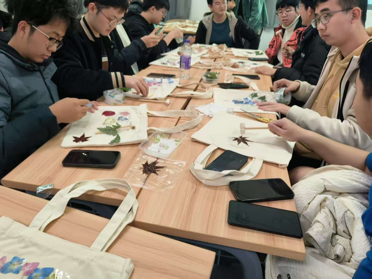 拓印着香樟叶的布袋替代一次性塑料包装,承载起低碳生活的温暖承诺。暮色渐浓,拓印活动虽已落幕,但布上草木仍在诉说春的故事。水电学子以艺术对话自然,用创意激活环保,让水利人的匠心与浪漫,随这一袋袋春色流淌进校园的每个角落。(文、图/于雪琪)