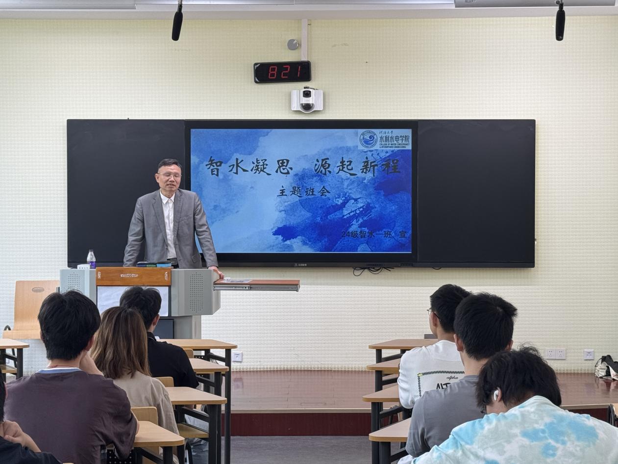 为深化专业认知、凝聚班级力量,皇冠赌场 2024级智水一班与智水二班于河海大学江宁校区开展主题班会。淮河水利委员会水文局原局长钱名开、河海大学党委宣传部部长魏有兴出席并讲话,智慧水利系主任、智水二班班导师许栋、智水一班班导师朱延涛、辅导员笪步源及班级全体学生参与,班会通过经验分享与互动交流,共话成长方向。