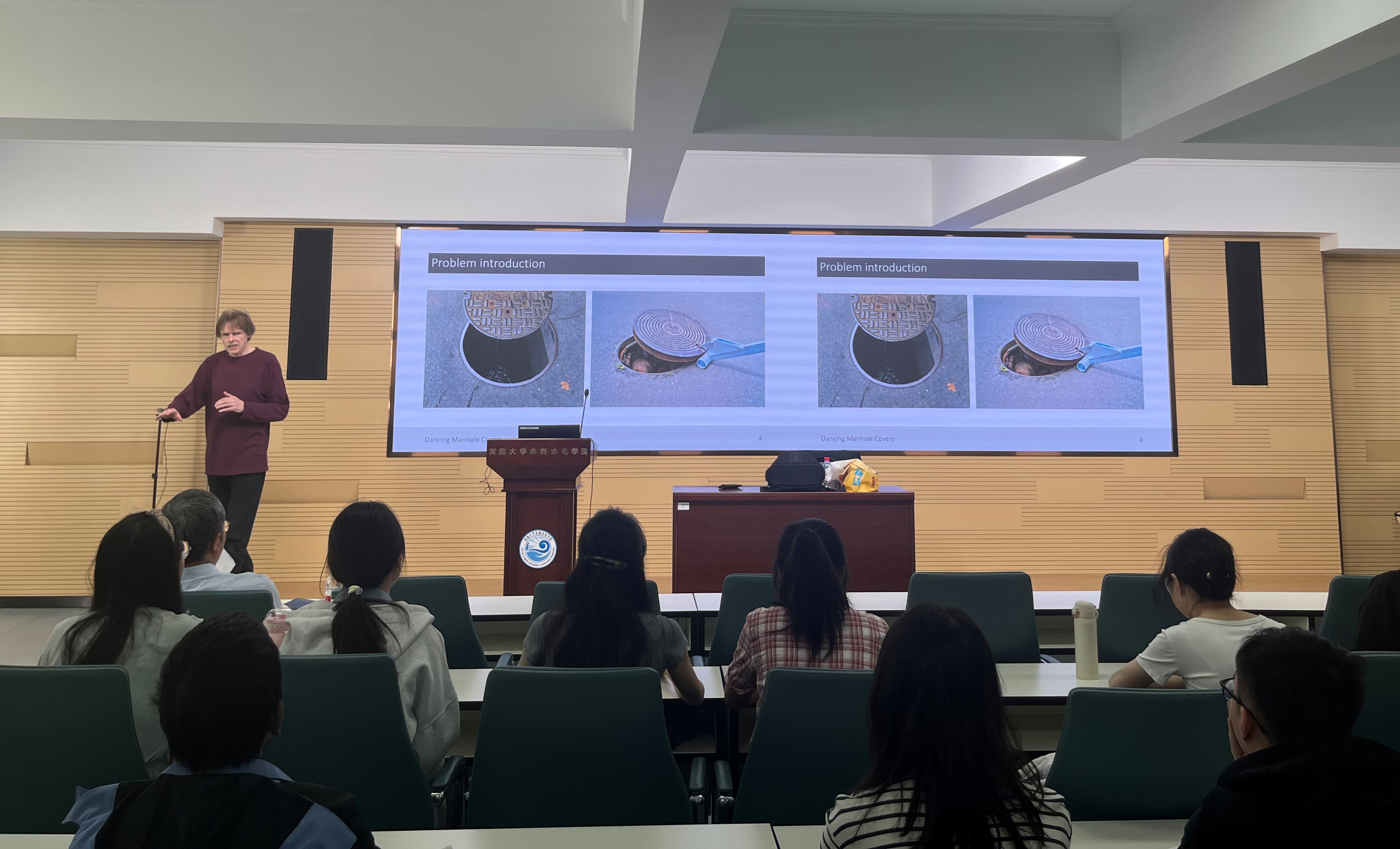 为拓宽学术视野,加强学术交流,皇冠赌场 于56日成功举办“百十学术”校庆系列活动之“井盖跳动现象:动力学建模与数值模拟研究”学术讲座,特别邀请埃因霍温理工大学数学与计算机科学系副教授Arris S Tijsseling作为主讲人。本次活动吸引了众多师生前来参与,现场座无虚席,学术氛围浓厚。会议由周建旭教授主持。