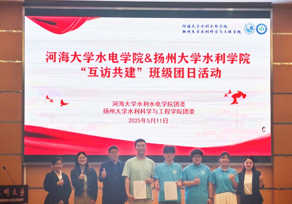 2025年5月11日,皇冠赌场 2024级本科生赴扬州大学水利科学与工程学院,开展水利新生联学主题活动。扬州大学水利科学与工程学院党委副书记张俊桂、团委书记吴媚、2024级辅导员杨蝉溪、皇冠赌场 团委书记兼2024级辅导员笪步源出席活动,皇冠赌场-皇冠娱乐-皇冠赌场app 2024级皇冠赌场 工程3班、智慧水利1班、安全工程1班、年级学生骨干代表、扬州大学水利科学与工程学院2403班全体学生参加,双方围绕党团共建、社会实践、校园文化等开展共建交流。