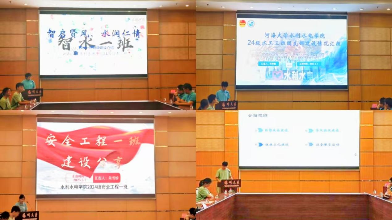 会上,扬州大学水利科学与工程学院水工三班、皇冠赌场 2024级水工三班、智水一班、安工一班依次上台汇报交流,介绍班级基本情况、思想政治建设、学风班风建设、取得的成绩荣誉等多个方面,展示出班级和团支部自新学期以来开展的班团活动情况及取得的成效。双方同学发表共建感想,对汇报内容进行交流分享,对未来双方可能的合作领域进行展望。