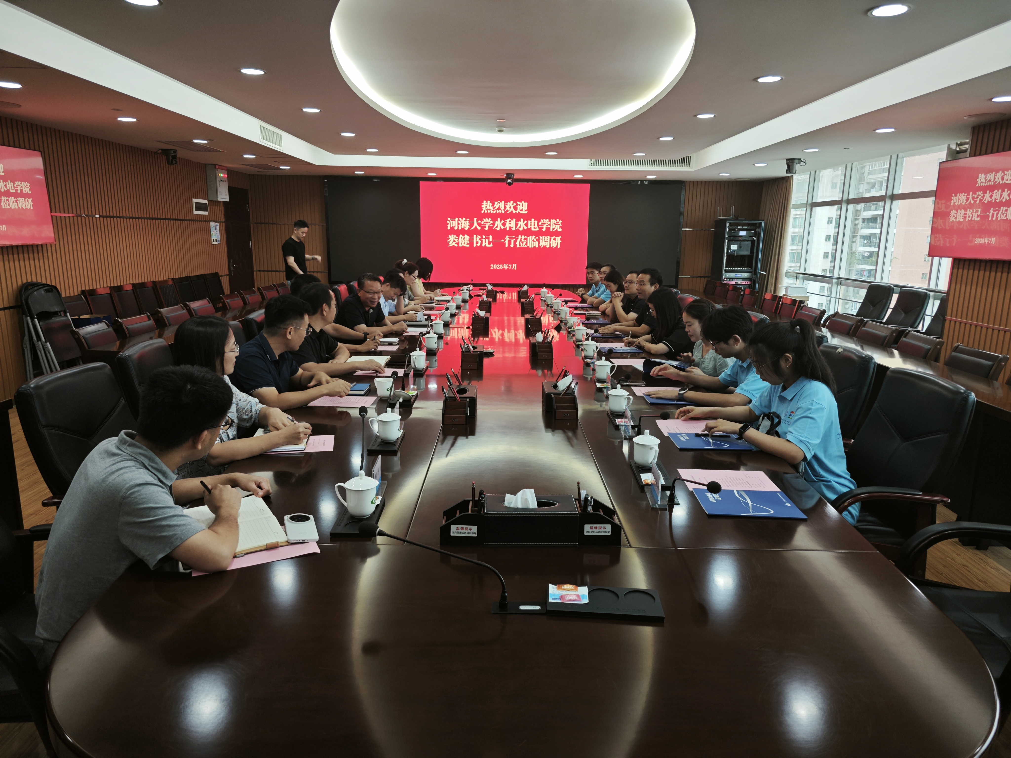 7月23日,我院党委书记娄健、副院长俞晓东、党委副书记戴媛媛、团委书记笪步源、辅导员陈辰率珠江流域水资源智化配置调研实践团赴广东省皇冠赌场 科学研究院(以下简称“广东水科院”)开展实践调研和访企拓岗活动。广东水科院院长易小兵、副院长刘达、董明、相关部门负责人、校友陪同交流。此次活动旨在深化校企合作,搭建科研协同与人才培养平台,推动水利科技成果转化与行业高质量发展。