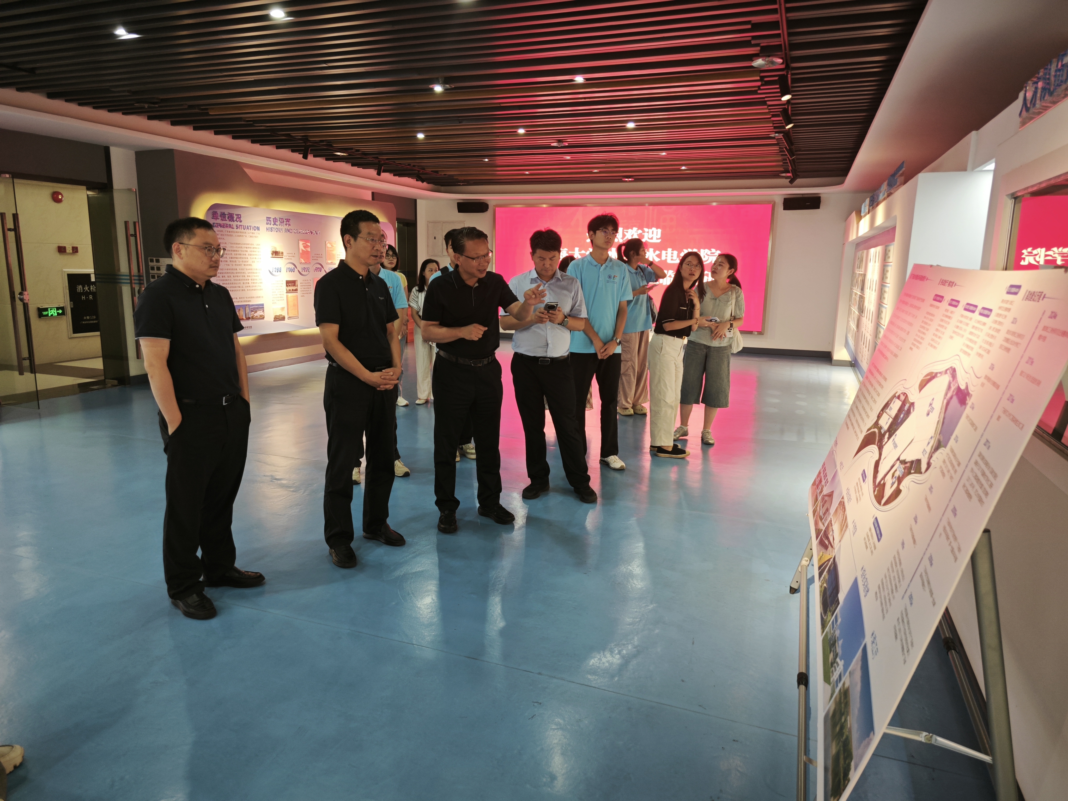 在广东水科院发展历程及科研成果展示馆,实践团在水科院负责人的带领下,系统了解了广东水科院在水利工程技术研发、水资源管理等领域的突出成就及一系列紧贴行业需求的科研成果与工程案例,深刻感受到水利科技工作者“攻坚克难、守正创新”的精神风貌。