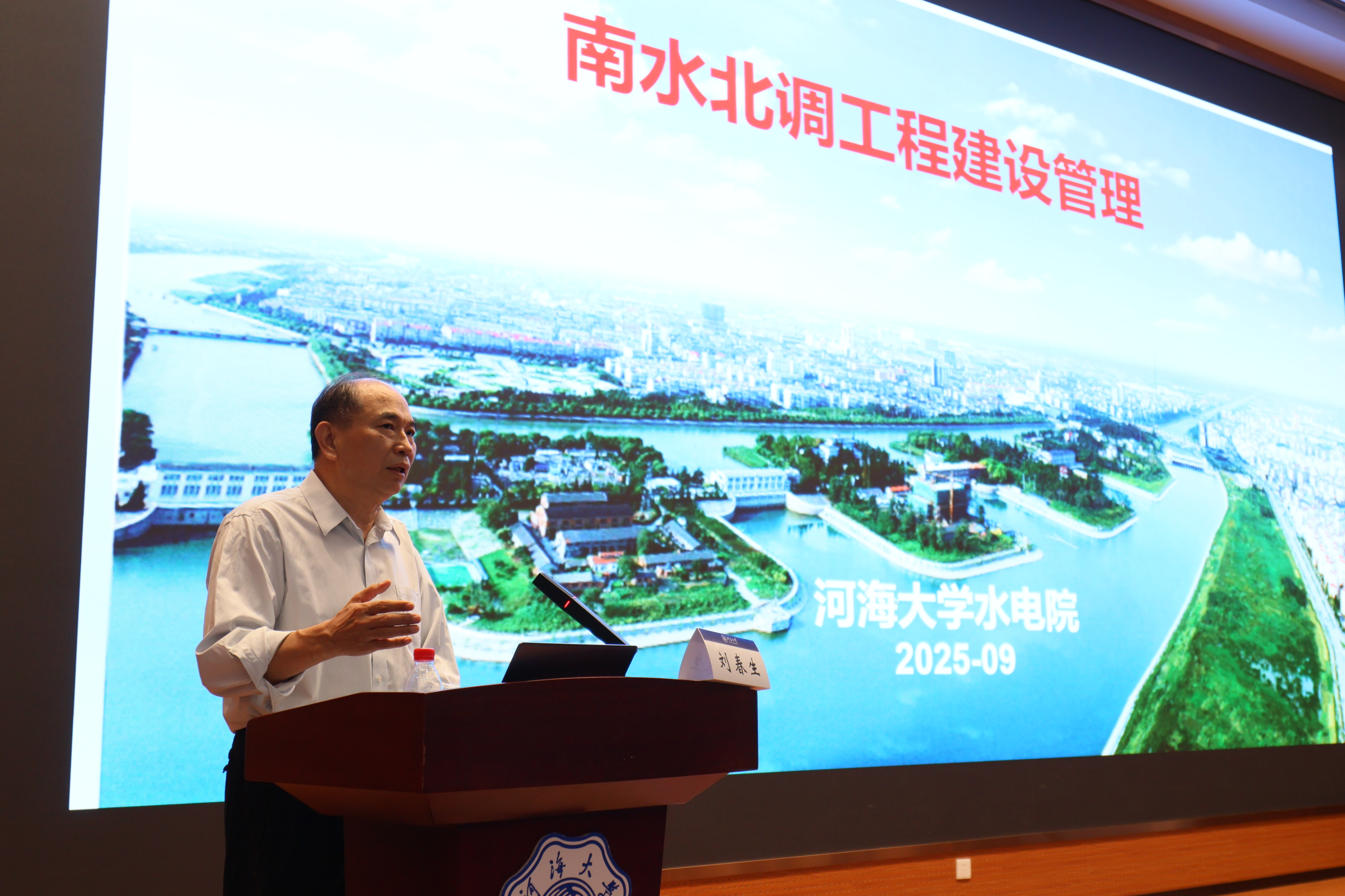 9月19日,南水北调中线干线工程建设管理局原党组书记、教授级高级工程师刘春生为皇冠赌场 2025级研究生做题为《南水北调工程建设管理》报告。学院副院长俞晓东、党委副书记戴媛媛、院长助理雷彬彬、研究生辅导员陈思思以及2025级研究生参加活动。