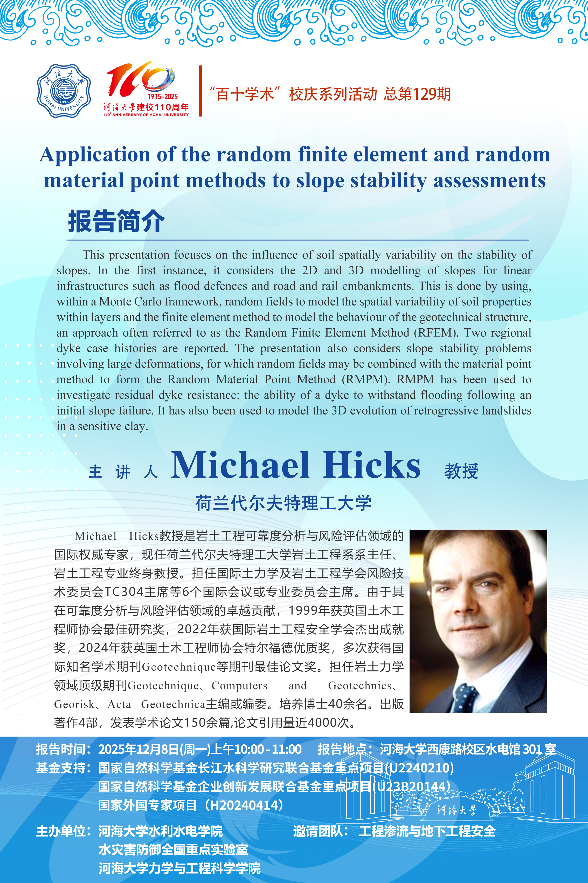 学术报告|Application of the random finite element and random material point methods to slope stability assessments