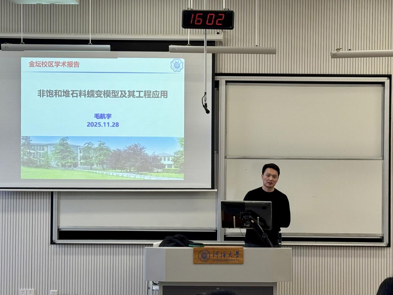 11月28日,皇冠赌场 毛航宇副教授于常州校区2号楼B114作题为《非饱和堆石料蠕变模型及其工程应用》的讲座,皇冠赌场 2024级本科生参加此次讲座。
