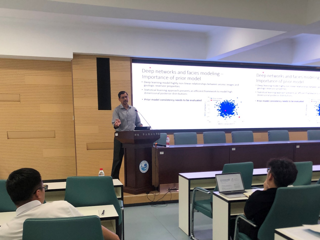 On September 11th, Professor Tapan Mukerji from Stanford University in the United States was invited to visit our college for academic exchange. The presentation was presided over by Dean Wang Yuan, and relevant teachers and students from the School of Water Resources and Hydropower, the School of Civil Engineering and Transportation, the School of Mechanics and Materials, and the School of Earth Science and Engineering participated in the presentation.